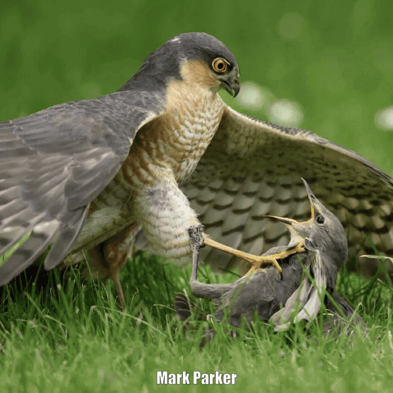 The winning images from this yearâs British Wildlife Photography Awards include a shot of a sparrowhawk pinning a young starling; a swimming frog, seen from below, surrounded by trees; a peacefully sleeping cygnet; a water droplet caught on two bulbs of slime mould; an inquisitive pine marten, which has clearly spotted the photographer; and a tadpole swimming around in its transparent egg. To see more, click the image.