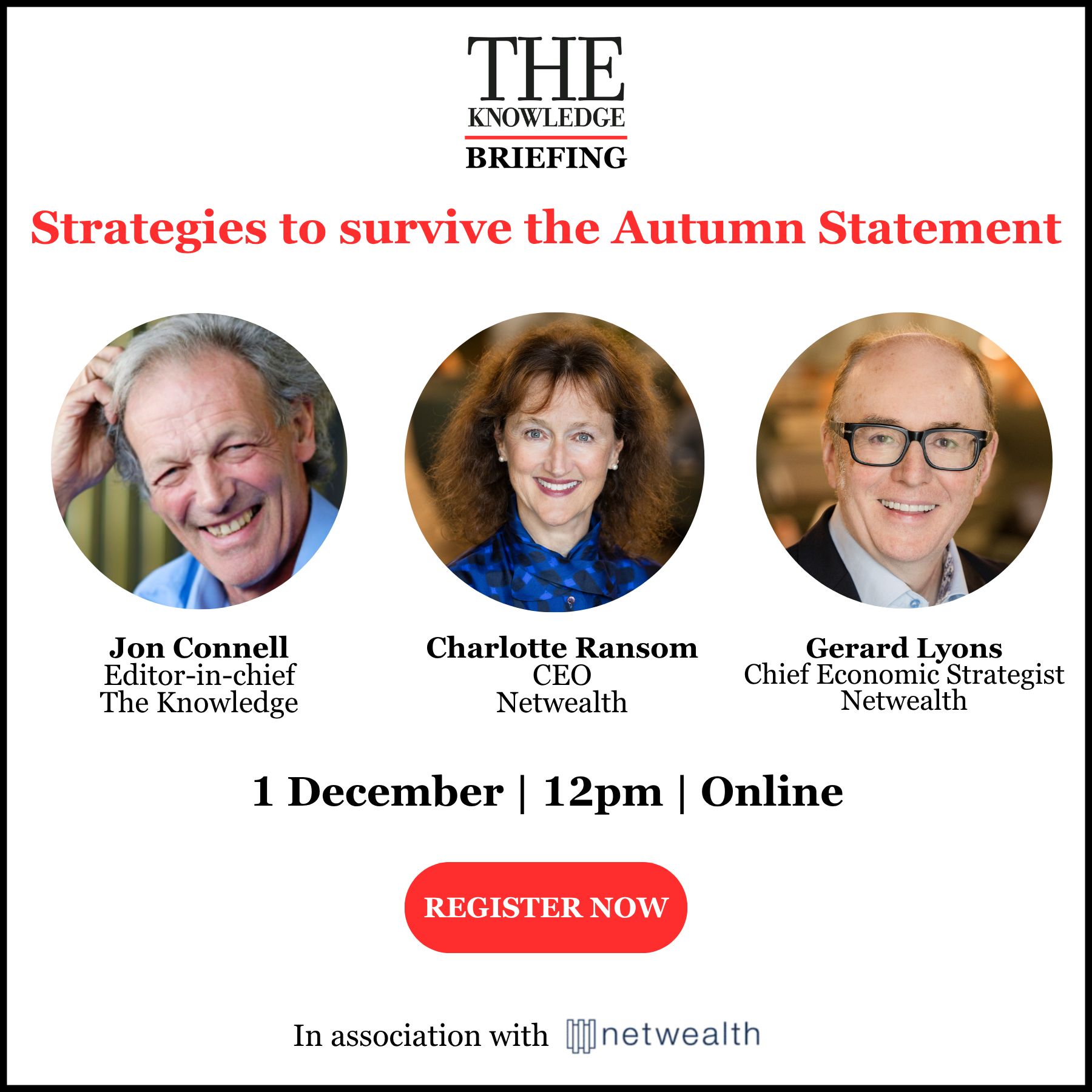 Join me for an exclusive online session where I take a first look at the Budget with Charlotte Ransom, CEO, and Gerard Lyons, Chief Economic Strategist - both from Netwealth, one of the UK’s most innovative and successful wealth management firms. They will provide initial thoughts, breaking down the key announcements and exploring their potential impact on markets, taxation and, most importantly, your savings and investments.