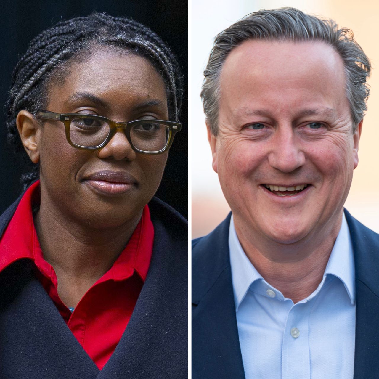 Kemi Badenoch (L) and David Cameron, the last PM to win re-election. Getty
