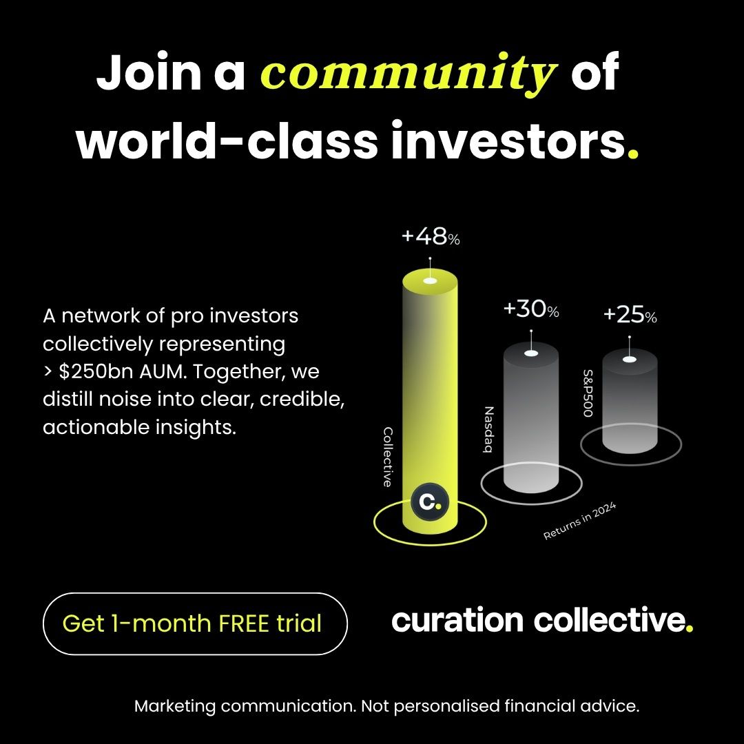 Curation Collective brings together world-class stock market investors representing $250bn AUM. Access the investment ideas driving +48% returns in 2024. No single voice or guru - just the collective intelligence of our community. Get exclusive insights, community discussions, and curated investment ideas that cut through market noise. Start your 1-month free trial. Not personalised investment advice, always do your own research.