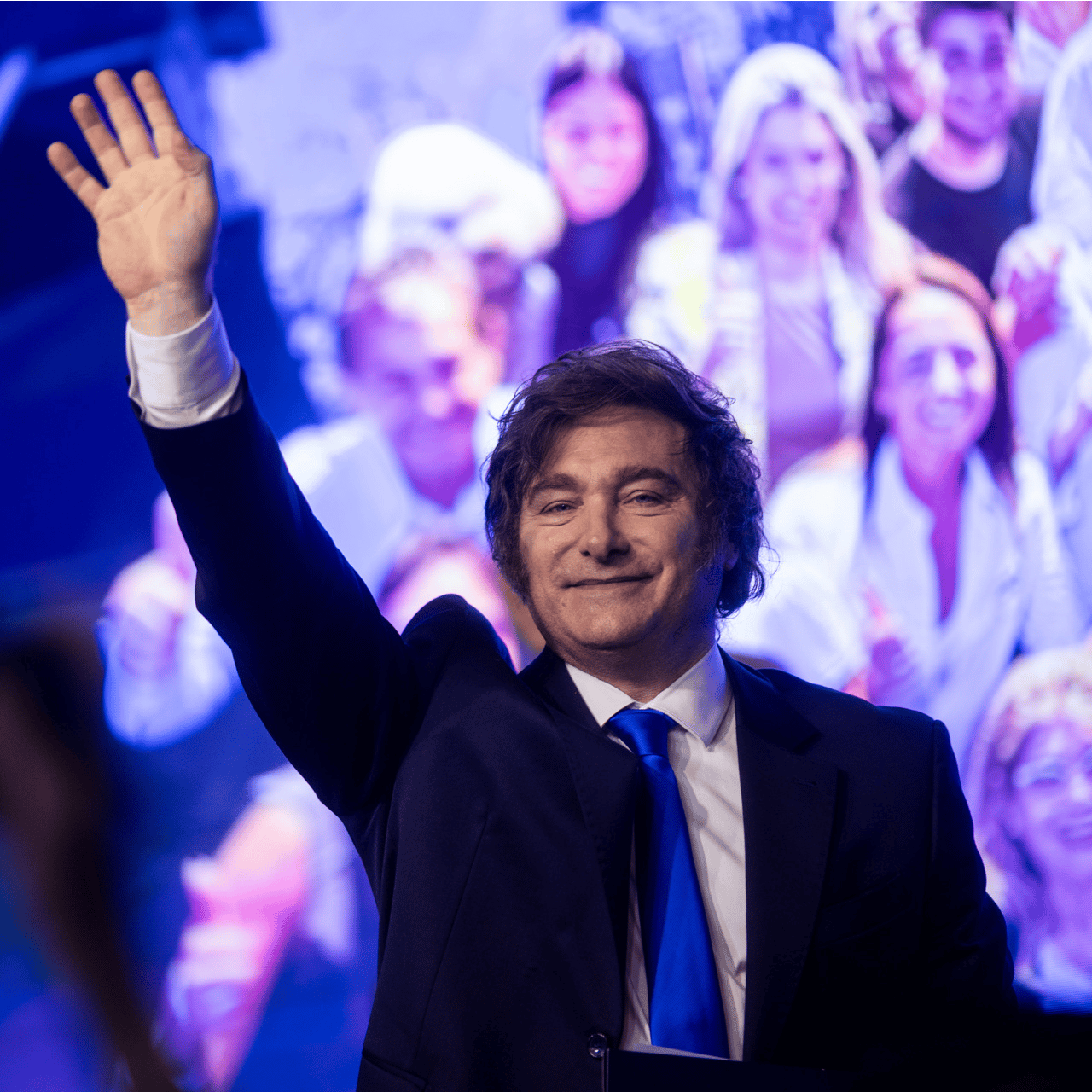 Milei after his victory on Sunday. Tomas Cuesta/Getty