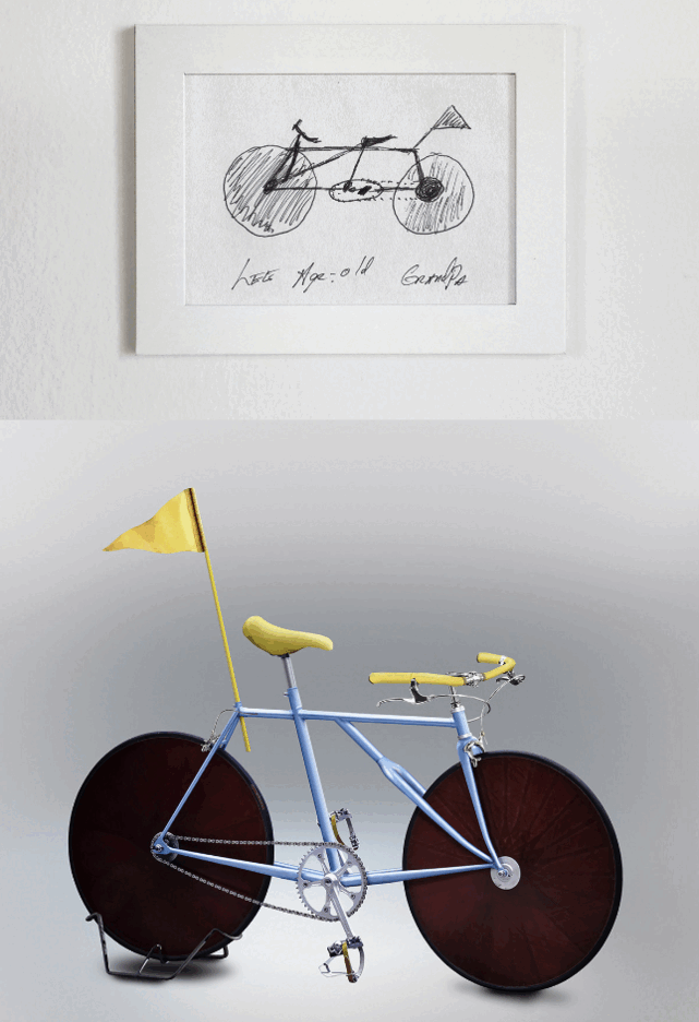 In 2009, Italian-American designer Gianluca Gimini started asking friends and strangers to draw a men’s bicycle from memory, says the online magazine Booooooom. Having amassed a collection of 376 drawings from volunteers aged from three to 88, Gimini is now building 3D renderings of some of the more bizarre designs. See the rest of his Velocipedia here.