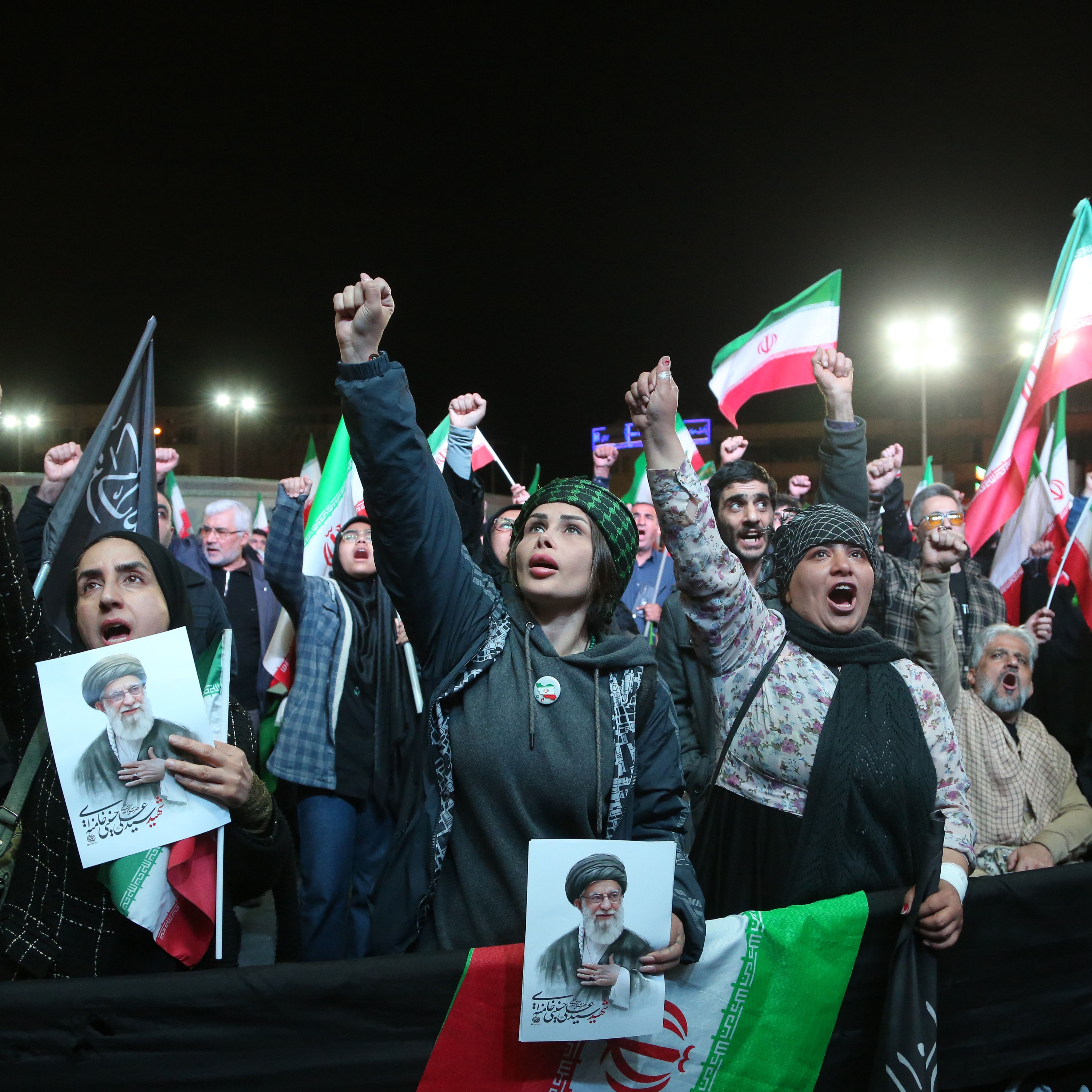 Pro-regime Iranians chanting in Tehran last week. Fatemeh Bahrami/Anadolu/Getty