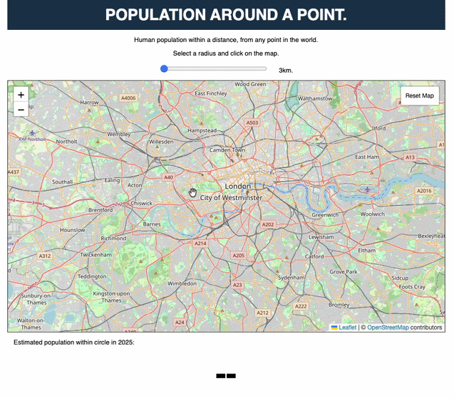 If youâve ever wondered how many people live near you, says Matt Muir in Web Curios, have a look at the Circle Population website. You can pick any location in the world, and itâll tell you the estimated population of whatever radius you choose, between 3km and 100km. Within 3km of Knowledge Towers, for example, live more than 413,000 people. Click here to give it a go.