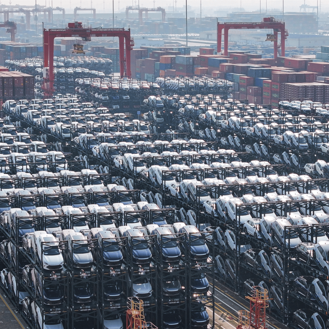 BYD electric cars waiting to be loaded on to a ship at Taicang Port in Suzhou. STR/AFP/Getty