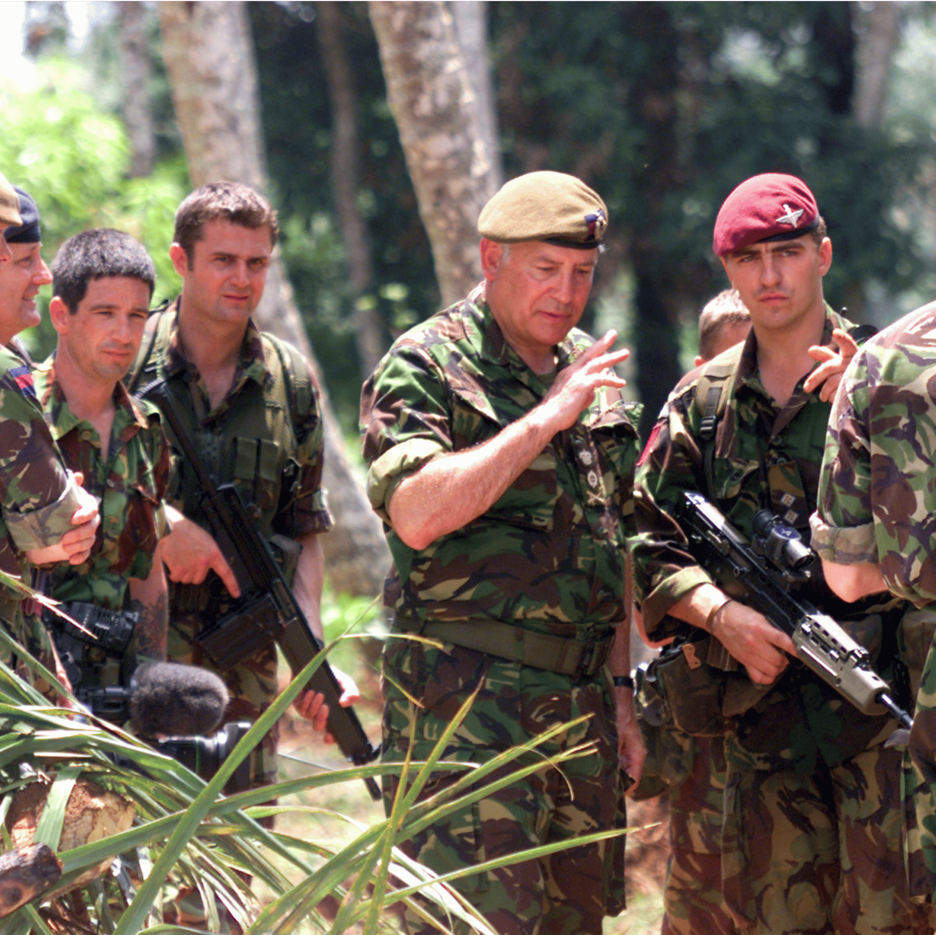 Guthrie with British soldiers in Sierra Leone in 2000. Issouf Sanogo/AFP/Getty