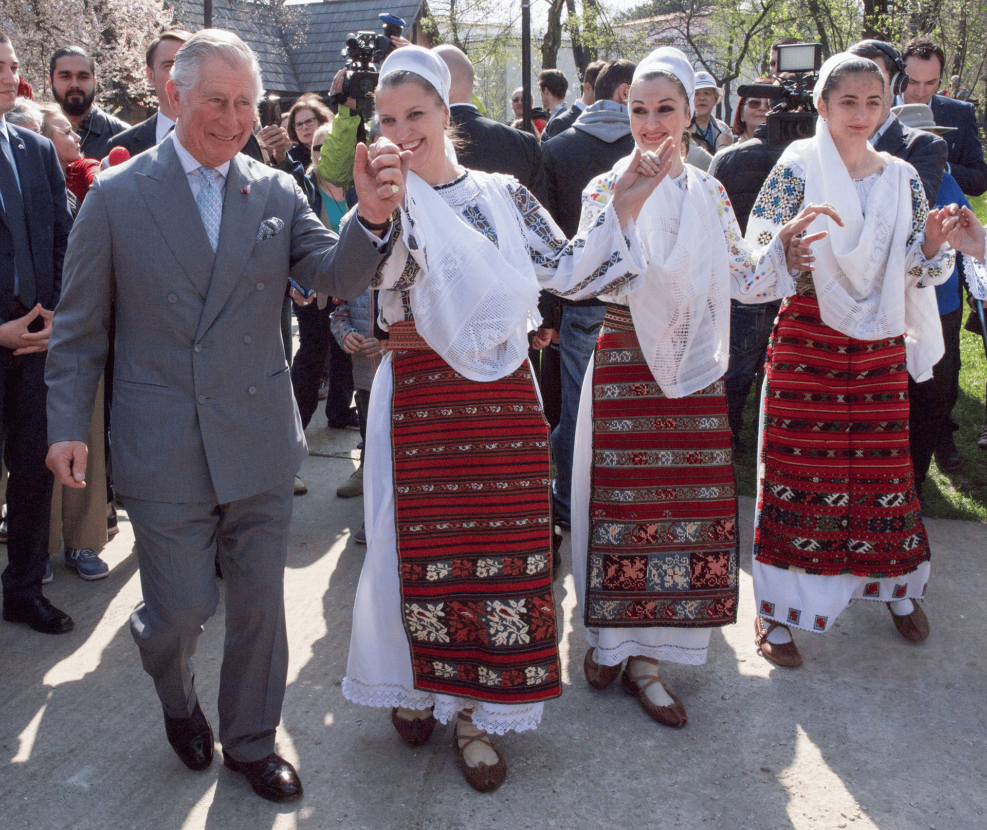 Dancing with Romanian dancers in 2017. Arthur Edwards/WPA Pool/Getty