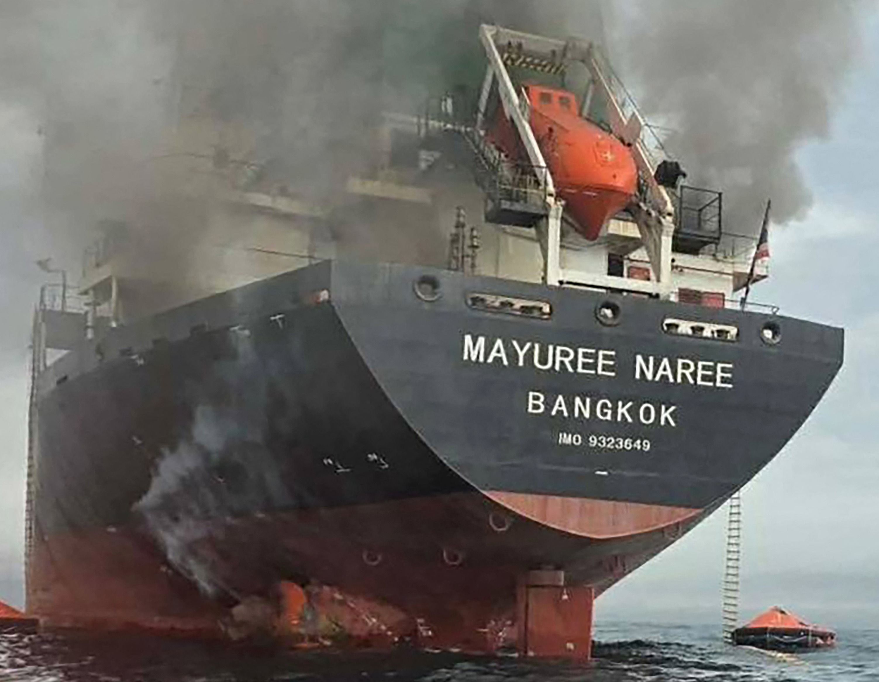 A Thai bulk carrier after an attack near the Strait of Hormuz this week. AFP/Getty