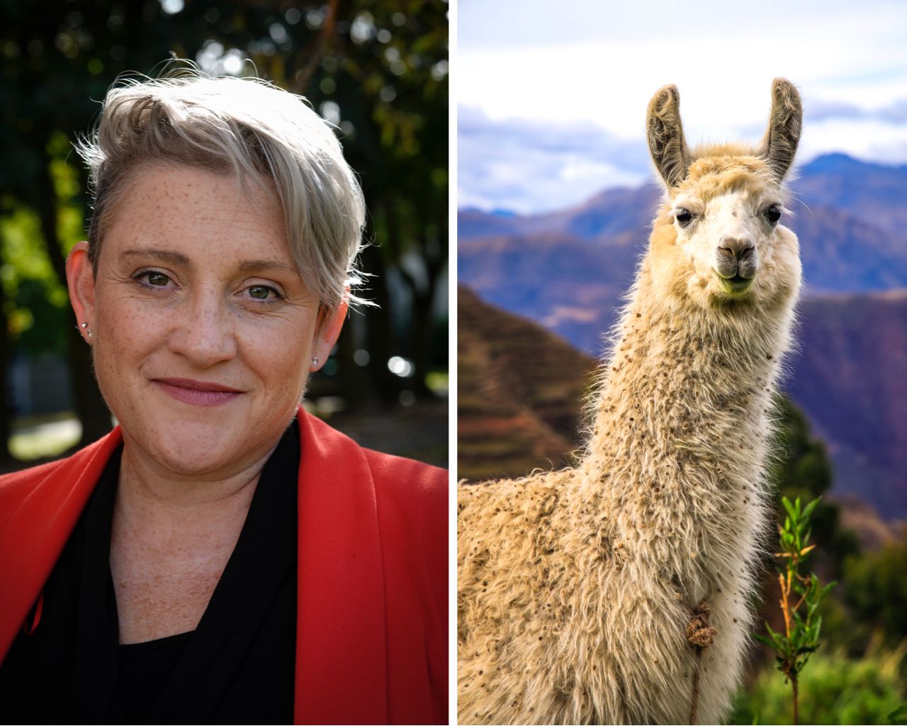 Ashley Dalton (L) and a llama