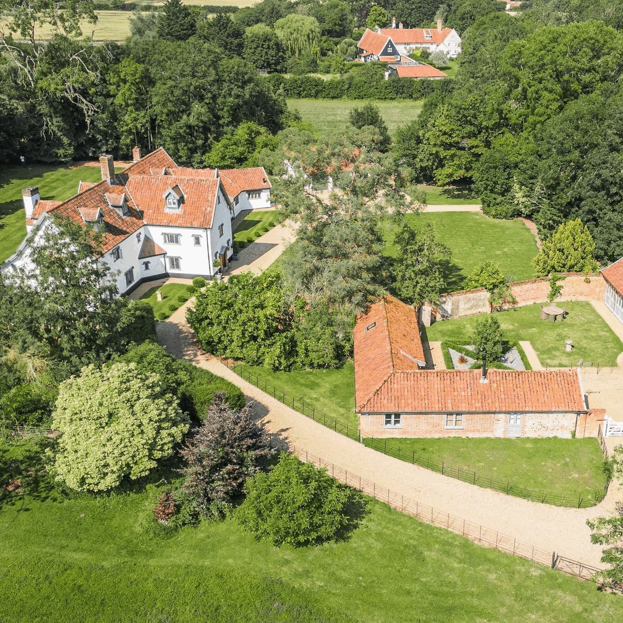 THE COUNTRY HOUSE Orchard Farmhouse is a seven-bedroom country home in the Norfolk village of Saxlingham Nethergate. On the ground floor is a modern kitchen, a spacious drawing room with a wood-burner, a snug, a utility room and a garden room looking out on to the roughly five acres of grounds. On the first floor are five en-suite bedrooms, one with its own dressing room, while a further two bedrooms are on the second floor. Separate to the main house are a two-bedroom lodge surrounded by a charming walled garden and a studio barn. Norwich is a 30-minute drive. £2.75m.