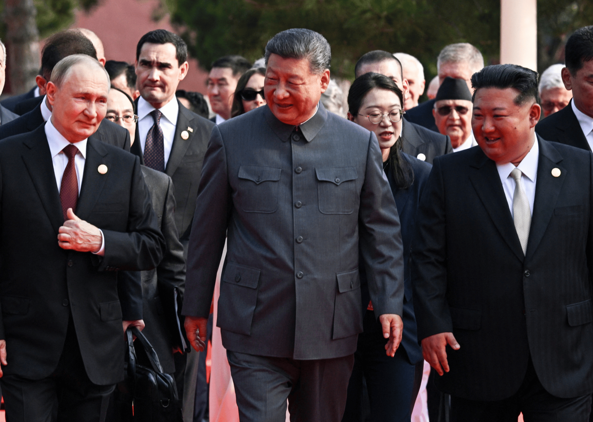 (L-R) Vladimir Putin, Xi Jinping and Kim Jong-un in Beijing this week. Sergey Bobylev/Getty